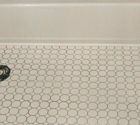 Hexagon floor tiles are another traditional design that works in any decor. They come on a sheet, so they’re quick to install and will never go out of style. As a bonus, they are inexpensive and in stock, ready to go at most large hardware stores and tile shops. Camille Walker was smitten the moment she saw them online and loved the way they looked in her home. However, when working with the tile, Camille realized that the tiny cuts needed to make the tile fit properly against the tub were very difficult to make. It was those cuts that drove the cost of installation up. Instead of giving up on her dream floor, her husband added a piece of trim to cover the gap between tile and tub and was able to save the day!