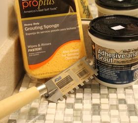 Here are the supplies that I used. The most key thing is the adhesive and grout in one, which is available at any hardware store.