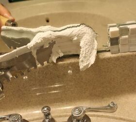 Apply grout/adhesive to the mirror.