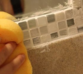 Use a wet sponge to remove excess adhesive from your tile. Clean it off really well before it dries!