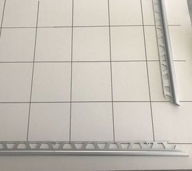 I don’t have a picture attaching the schluter so a made this grid to show you how to attach. Schluter is cut at a 45 degree angle to size of the picture frame I wanted.