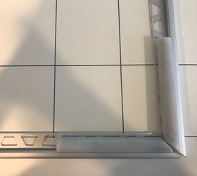 The first piece of schluter, which is the bottom part of the frame is attached to the wall with tiny screws in between the grout lines of the existing tile. The schluter has an edge to it that will keep your tiles from sliding. The side pieces are attached next with tiny screws make sure your frame is square